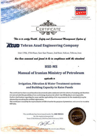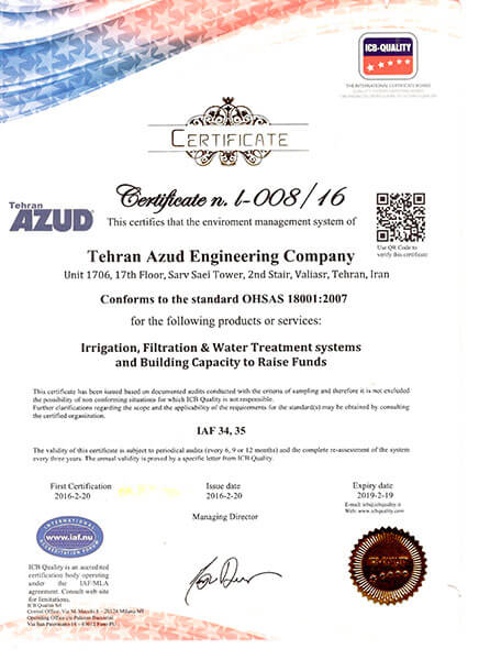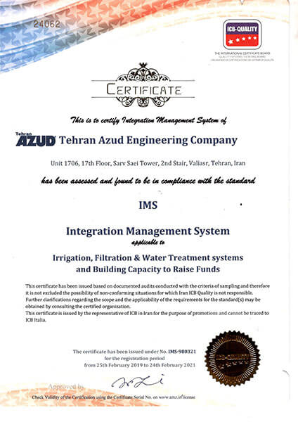 Since 2006, due to the extent of the company's positive activities in Iran, has succeeded in concluding a joint venture contract with Sistema AZUD Co. and currently Tehran AZUD Engineering Company as the office of AZUD Company of Spain in Iran, is producing the mentioned products in Iran.