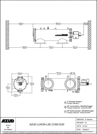 Inlet/Outlet connections : Ø 3”-20” (90-500 mm) – Flange (DIN 2576 / ANSI B16.5)